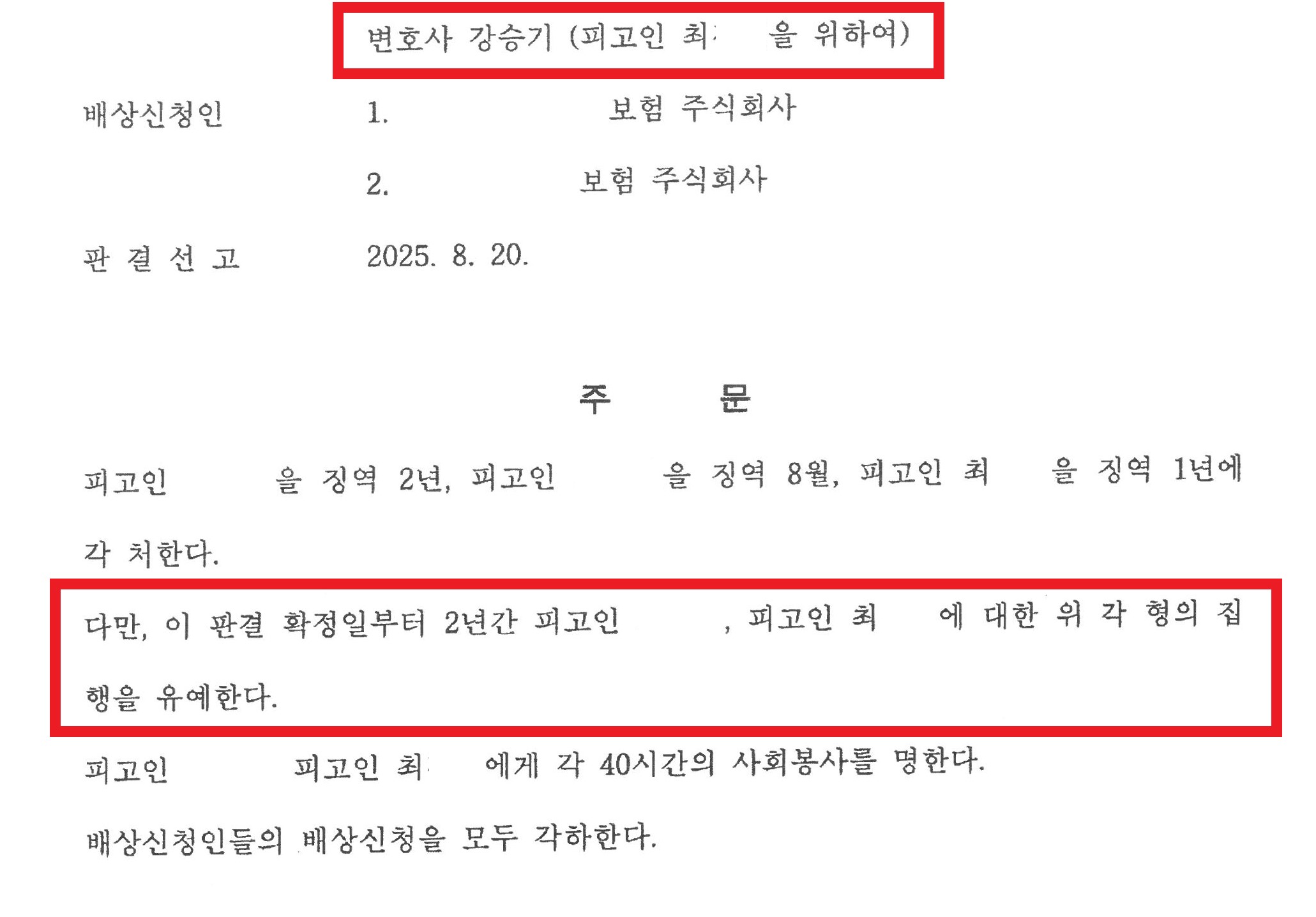 º¯È£¸¦ ¸ÃÀº °½Â±â º¯È£»ç´Â ÀçÆÇ °úÁ¤¿¡¼ ÇǰíÀÎÀÌ ÀÚ½ÅÀÇ À߸øÀ» ¸ðµÎ ÀÎÁ¤ÇÏ°í ±íÀÌ ¹Ý¼ºÇϰí ÀÖ´Ù´Â Á¡À» °Á¶ÇÏ¿´½À´Ï´Ù. ƯÈ÷ ÇǰíÀÎÀÌ À½ÁÖ¿îÀü ¹ú±ÝÇü 1ȸ ¿Ü¿¡´Â ´Ù¸¥ ¹üÁË Àü·ÂÀÌ ¾ø´Â Ãʹü¿¡ °¡±õ´Ù´Â Á¡°ú ½ÇÁ¦ ÃëµæÇÑ ÀÌÀÍÀÌ Àüü ÆíÃë¾× Áß ÀϺο¡ ÇÑÁ¤µÈ´Ù´Â Á¡À» ³í¸®ÀûÀ¸·Î ÇÇ·ÂÇÏ¿´½À´Ï´Ù. ¶ÇÇÑ, ÇÇÇØ º¸Çèȸ»çµéÀ» À§ÇØ ÇÕ°è 2,785¸¸ ¿øÀ» Çü»ç °øÅ¹ÇÏ¿© ½ÇÁúÀûÀÎ ÇÇÇØ ȸº¹À» À§ÇØ ³ë·ÂÇÑ Á¡À» ÇÙ½É ¾çÇü »çÀ¯·Î Á¦½ÃÇÏ¸ç ¼±Ã³¸¦ ±¸Çß½À´Ï´Ù.