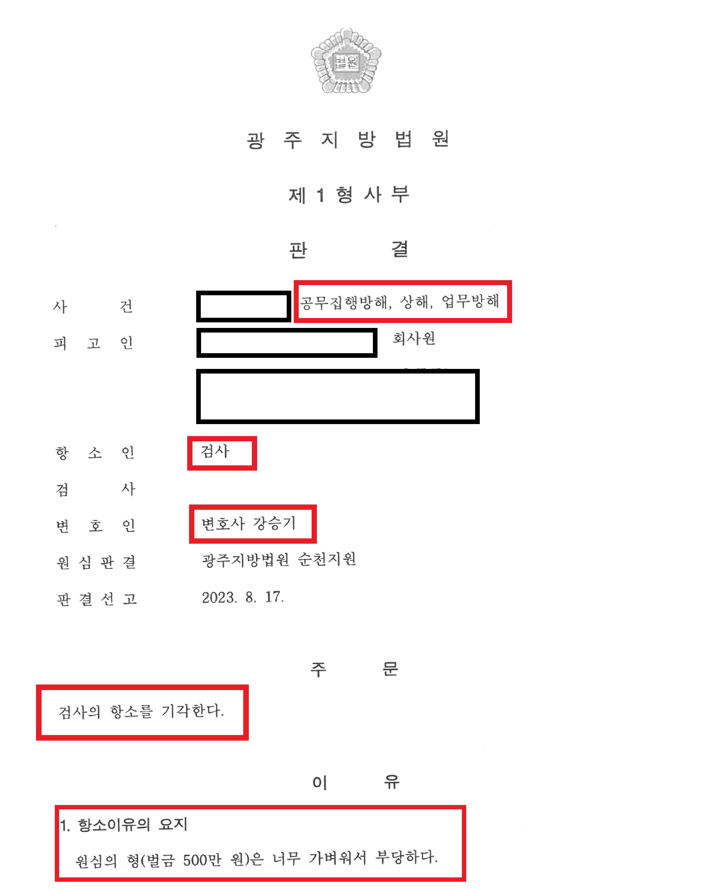[»ç°Ç°³¿ä ¹× ÇØ°á]ÇǰíÀÎÀº ¼ú¿¡ ÃëÇØ °¡°ÔÀÇ ¾÷¹«¸¦ ¹æÇØÇϰí, ½Å°í¸¦ ¹Þ°í Ã⵿ÇÑ °æÂû°üµéÀÇ ¾ó±¼À» ¶§¸®°Å³ª ³¶½ÉÀ» °È¾îÂ÷ ÀüÄ¡ 10ÀÏ¿¡¼ 2ÁÖÀÇ »óÇØ¸¦ ÀÔÈù ÇøÀÇ·Î ±â¼ÒµÇ¾ú°í, °ú°Å¿¡µµ µ¿ÀÏÇÑ °ø¹«ÁýÇà¹æÇØÁË·Î ÁýÇàÀ¯¿¹¸¦ ¼±°í¹ÞÀº Àü·ÂÀÌ ÀÖ¾î ½ÇÇü ¼±°í°¡ »ó´çÈ÷ ¿ì·ÁµÇ´Â »óȲÀ̾ú½À´Ï´Ù ÇÑÆí, ÇǰíÀÎÀº ÀçÁ÷ ÁßÀΠȸ»çÀÇ ±ÔÁ¤»ó ¹ú±ÝÇüÀ» ÃʰúÇÏ´Â ÇüÀÌ È®Á¤µÉ °æ¿ì ÅðÁ÷ »çÀ¯¿¡ ÇØ´çÇÏ¿© »ý°è±îÁö À§Çù¹Þ´Â Àý¹ÚÇÑ Ã³Áö¿¡¼ °½Â±â º¯È£»ç¸¦ ¼±ÀÓÇÏ°Ô µÇ¾ú½À´Ï´Ù. °Ë»ç´Â 1½ÉÀÇ ¹ú±Ý 500¸¸¿øÀÇ ÇüÀÌ Áö³ªÄ¡°Ô °¡º±´Ù¸ç Ç×¼Ò¸¦ Á¦±âÇÏ¿´°í, °½Â±â º¯È£»ç´Â Ç×¼Ò½É °úÁ¤¿¡¼ ÇǰíÀÎÀÌ ¼ö»ç´Ü°è¿¡¼ ºÎÅÍ ÀÚ½ÅÀÇ ¹üÇàÀ» ¸ðµÎ ÀÎÁ¤ÇÏ¸ç ±íÀÌ ¹Ý¼ºÇϰí ÀÖ´Ù´Â Á¡°ú, ¿ø½É¿¡¼ ÇÇÇØ °æÂû°üµéÀ» À§ÇØ Çü»ç °øÅ¹À» ÁøÇàÇÏ°í ±×Áß ÇÑ ¸íÀ¸·ÎºÎÅÍ´Â Á÷Á¢ ¼±Ã³¸¦ ±¸Çϴ ź¿ø¼¸¦ À̲ø¾î³½ Á¡À» °Á¶ÇÏ¿´½À´Ï´Ù ¶ÇÇÑ, ÀÇ·ÚÀÎÀÌ Àç¹ü ¹æÁö¸¦ À§ÇØ ²ÙÁØÈ÷ Á¤½Å°ú Ä¡·á¸¦ ¹ÞÀ¸¸ç ±ÝÁÖ ÀÇÁö¸¦ º¸À̰í ÀÖ´Ù´Â Á¡°ú ÇöÀç ¼º½ÇÈ÷ Á÷Àå »ýȰÀ» À̾°í ÀÖ´Ù´Â Á¡ µî À¯¸®ÇÑ Á¤»óµéÀ» ³í¸®ÀûÀ¸·Î ÇÇ·ÂÇÏ¿´½À´Ï´Ù ÀÌ¿¡ Ç×¼Ò½É ÀçÆÇºÎ´Â °½Â±â º¯È£»ç°¡ Á¦½ÃÇÑ ¾çÇü Á¶°ÇµéÀ» ÂüÀÛÇÏ¿© °Ë»çÀÇ Ç×¼Ò¸¦ ±â°¢ÇÏ°í ¿ø½ÉÀÇ ¹ú±ÝÇüÀ» À¯ÁöÇÏ¿´½À´Ï´Ù
